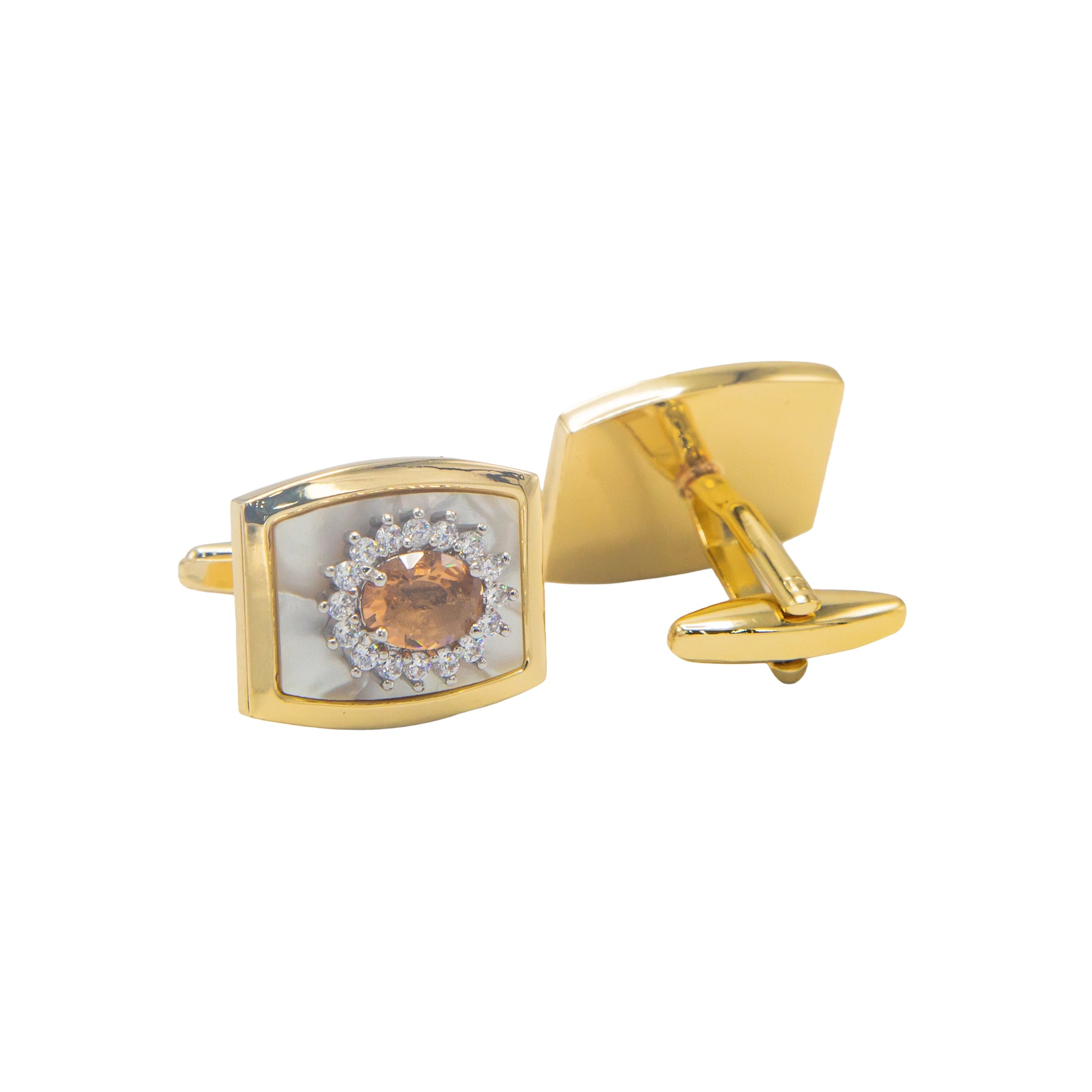 Premium Zircon Champagne Stone Golden Rectangular Cufflinks