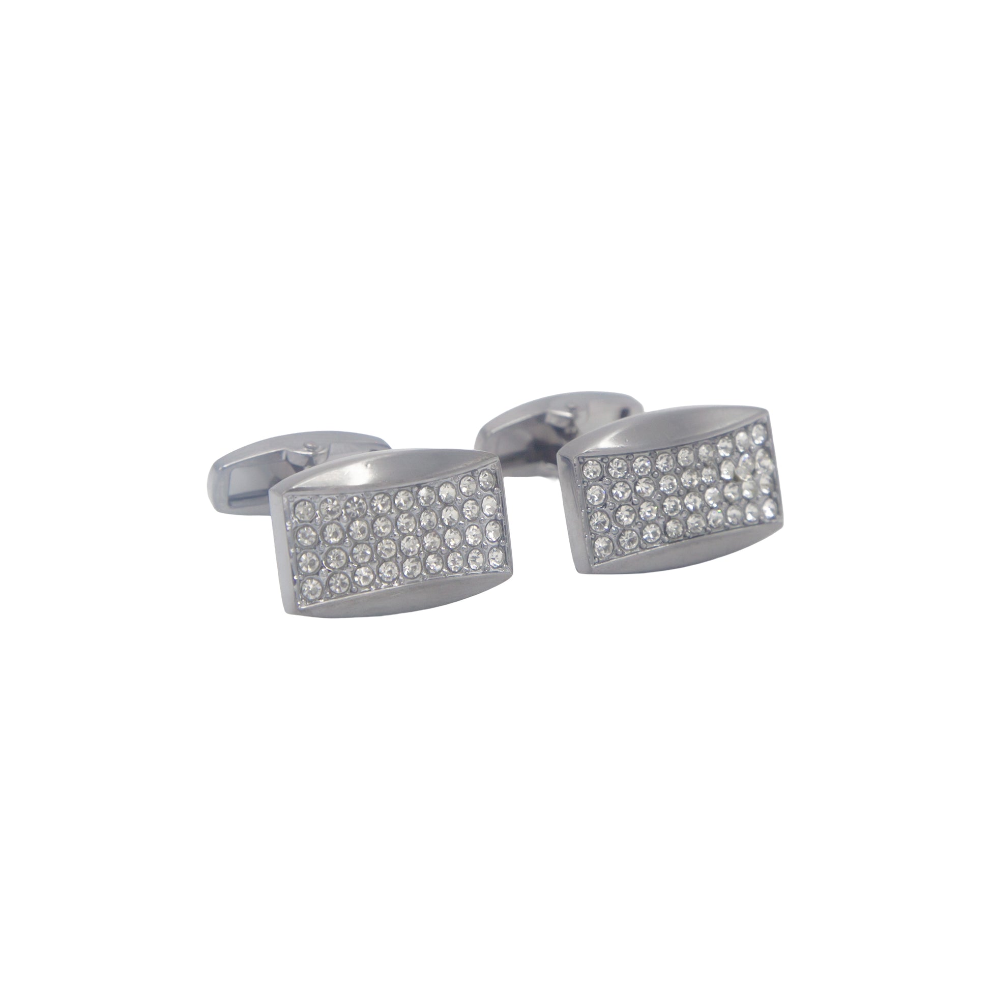 Rectangular Shape Silver Crystal Stones Cufflinks.